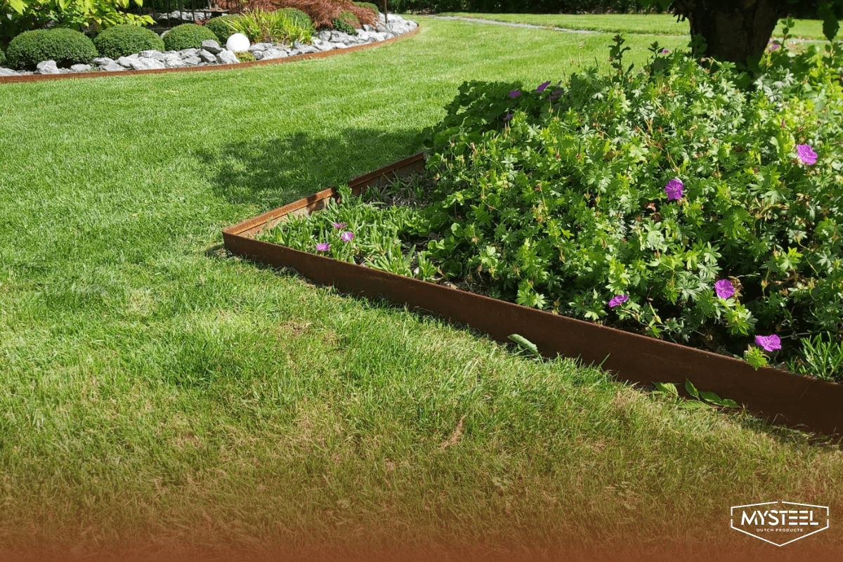 - Rubnici od Corten čelika. Ovaj materijal je popularan izbor zbog svog prirodnog rustičnog izgleda. Nakon nekog vremena, Corten čelik razvija lijepu patinu koja vrtu daje rustičan šarm.
