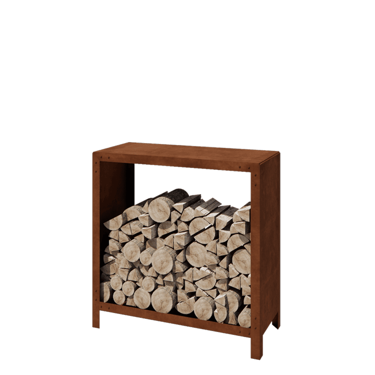 Ovo spremište za drva ima dimenzije 100 x 40 x 100 cm i izrađeno je od 2 mm debljine Corten čelika. Proizvod dolazi kao montažni set s uključenim materijalom za sastavljanje, što vam omogućava jednostavnu montažu. Povišene noge sprečavaju direktan kontakt s tlom, čime se sprječava vlaga i drvo ostaje suho.