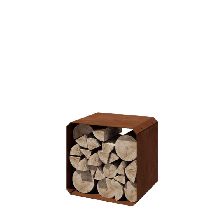 Spremište za drva ima dimenzije 40 x 40 x 40 cm i izrađeno je od 3 mm debelog Corten čelika. Kubus dolazi s montažnim materijalom koji omogućuje jednostavnu montažu. Nakon sastavljanja, spremište stoji čvrsto i spremno je za korištenje.